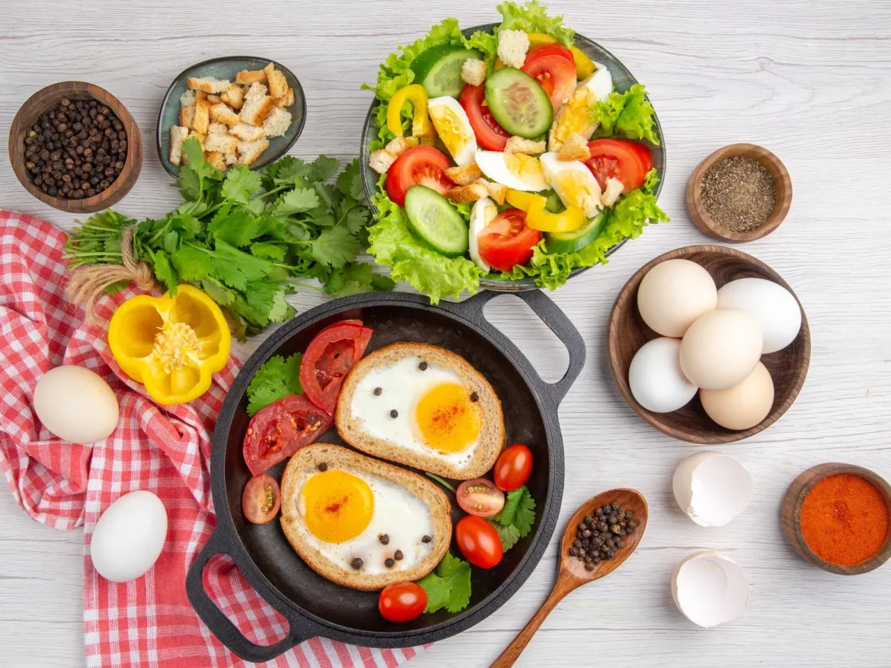 - Jajecznica z warzywami – dostarcza białka oraz witamin, a także jest łatwa w przygotowaniu.