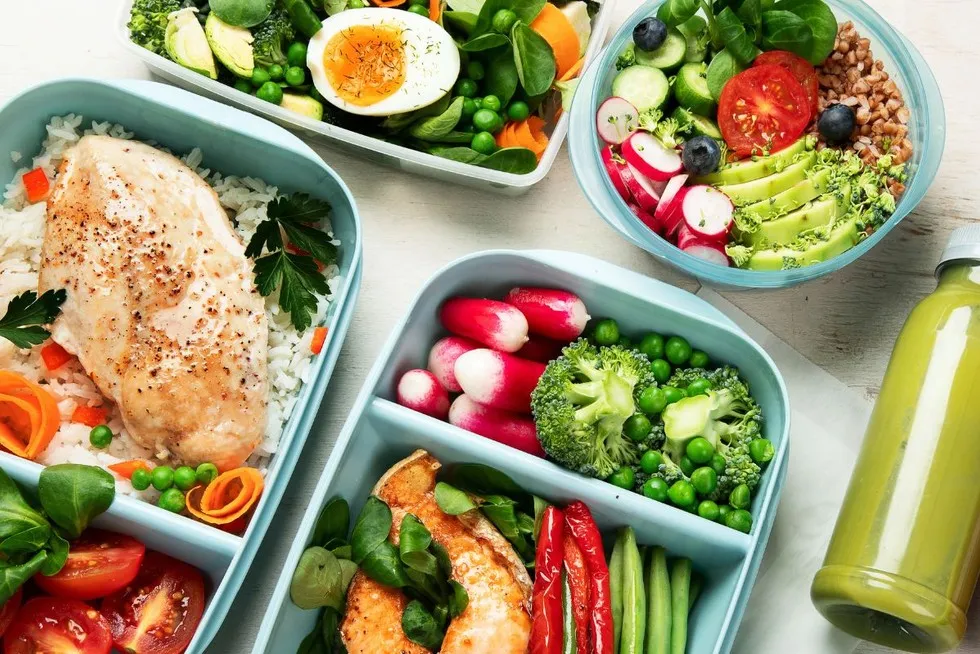- Proponowane dania to m.in. sałatka z kurczakiem, pieczony łosoś oraz makaron pełnoziarnisty z warzywami.